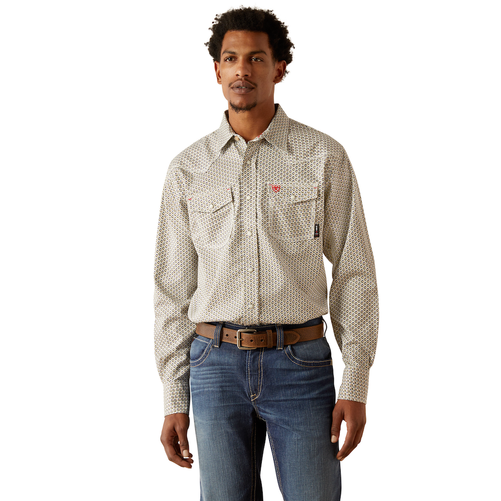 Our flame-resistant Retro Fit snap work shirts are an elevated take on a Western staple. With quality construction, the safety features you need on the job and a tapered fit you can wear tucked or loose, it's durable enough for work but can easily be dres