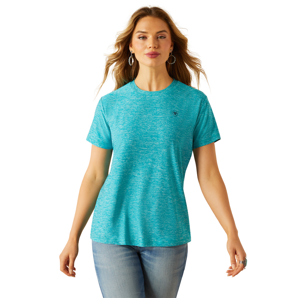 Your go-to tee for hot days. Lightweight, breathable, and sweat-wicking, it has a roomy, relaxed fit and an Ariat logo on the back. Wear it at the barn, in the gym, or around town—it does it all.