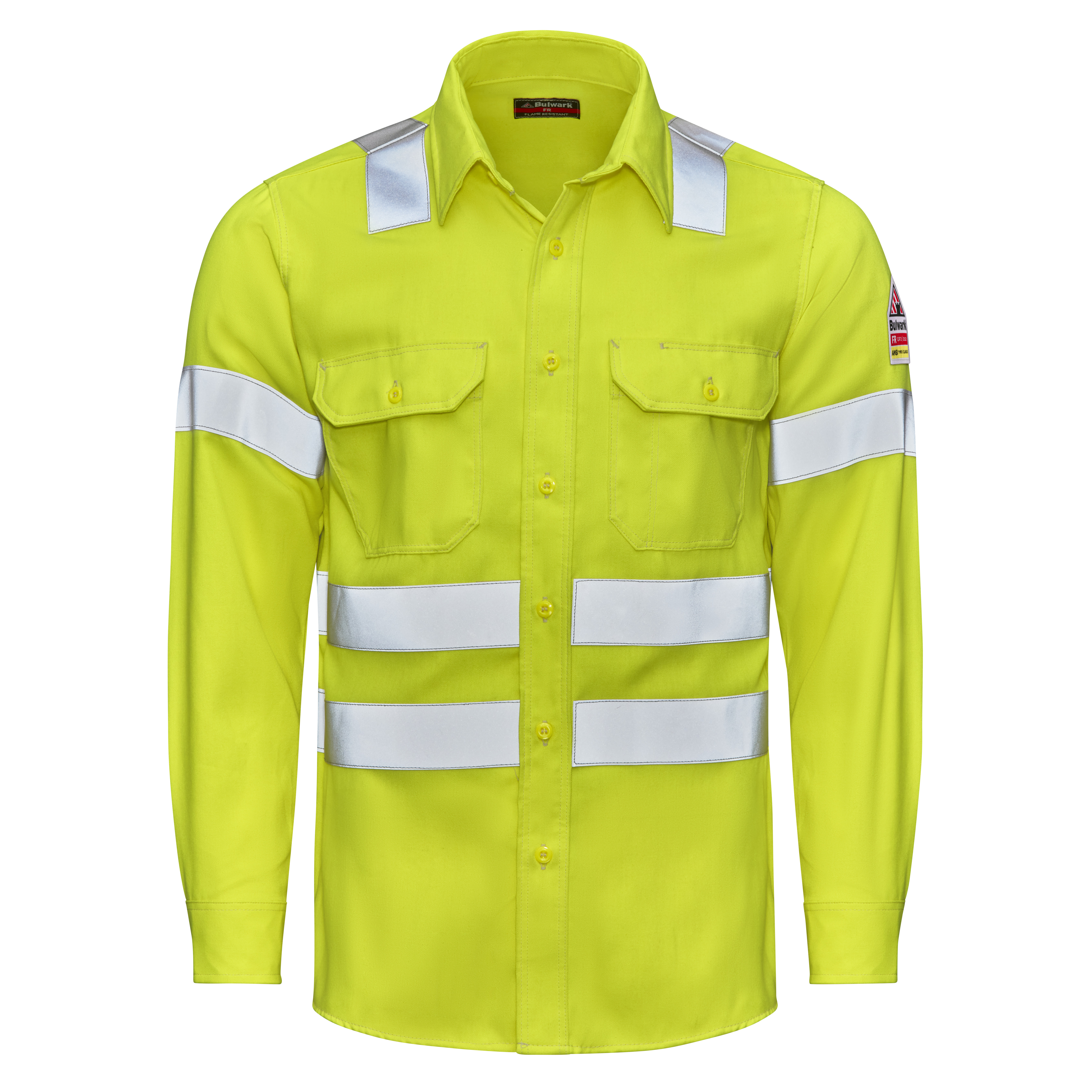 This hi-vis work shirt combines CAT 2 FR/AR protection with ANSI/ISEA 107 Type R Class 3 compliancy and a professional workwear look. Two chest pockets with button flap closure provide secure storage. 2” reflective striping offers 360° visibility to keep you seen and safe.