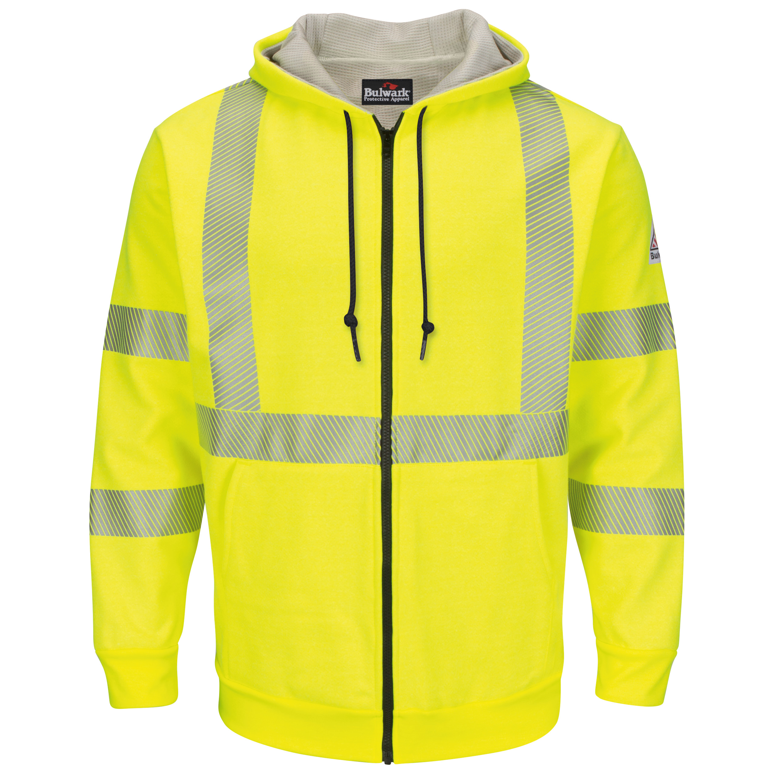 This fleece hoodie is the ultimate combination of FR protection, hi-vis compliance and comfort, for extra cold days on the job. With CAT 4 AR/FR protection and ANSI 107-2010 Class 3 Level 2 compliant & ANSI 107-2015 Type R Class 3 compliancy, plus waffle knit lining for an extra layer of warmth.