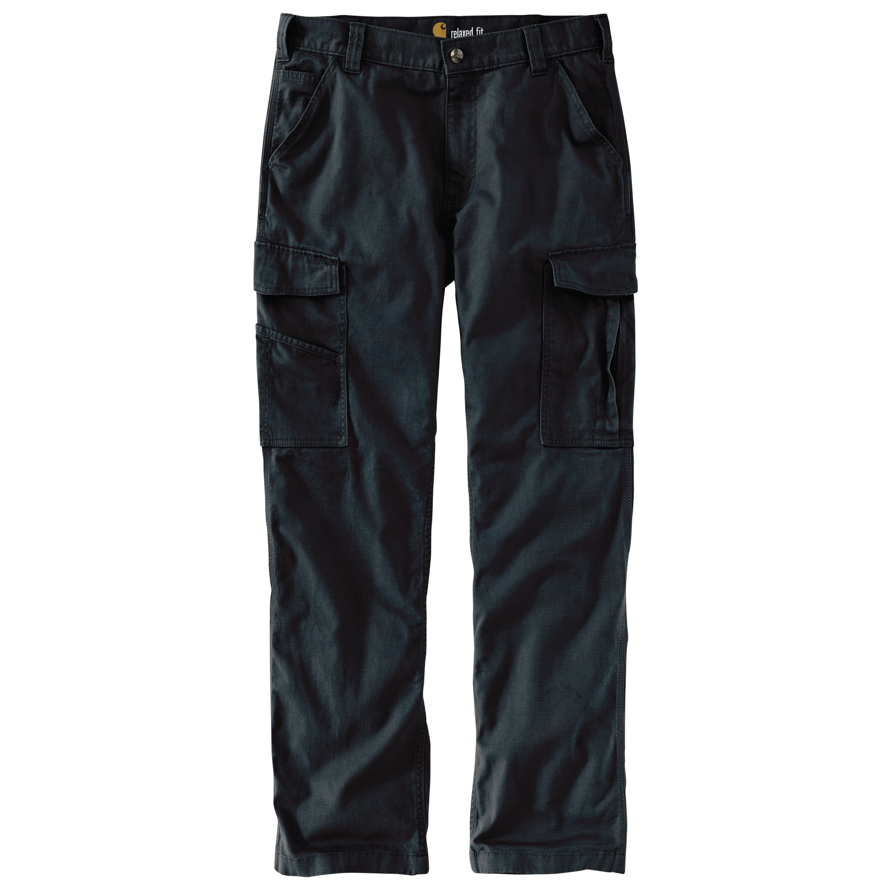 8.5-ounce, 98% cotton/2% spandex canvas Rugged Flex® durable stretch technology for ease of movement Sits slightly below the waist Comfortable fit through the seat and thigh with more room to move Right leg cargo pocket with secure cell phone storage Left-leg cargo pocket with utility pocket Hidden hook and loop closures on cargo and back pocket flaps Stronger sewn-on-seam belt loops Straight leg opening Imported
