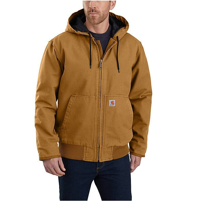 12-ounce, 100% ringspun cotton duck Nylon lining quilted to 80g 3M™ Thinsulate™ insulation in body, sleeves, and hood Attached hood with low profile adjustment at hood hem Updated lower front pockets with brushed tricot lining and reinforced bottoms Pen stall in wearer's right, lower front pocket Two interior pockets Cordura®-reinforced sleeve hem with interior rib-knit storm cuffs Elbow pleats for ease of movement Triple-stitched main seams Back Length: Large Regular: 28 1/2 inches