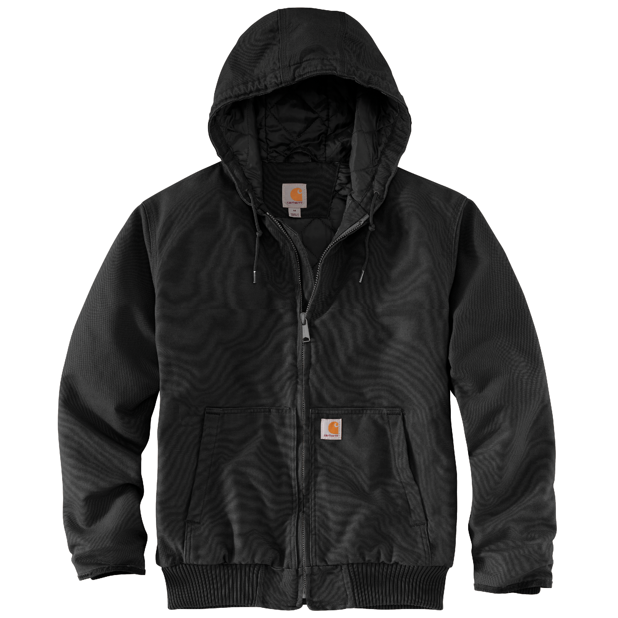 12-ounce, 100% ringspun cotton duck Nylon lining quilted to 80g 3M™ Thinsulate™ insulation in body, sleeves, and hood Attached hood with low profile adjustment at hood hem Updated lower front pockets with brushed tricot lining and reinforced bottoms Pen stall in wearer's right, lower front pocket Two interior pockets Cordura®-reinforced sleeve hem with interior rib-knit storm cuffs Elbow pleats for ease of movement Triple-stitched main seams Back Length: Large Regular: 28 1/2 inches