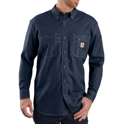 Flame-Resistant Carhartt Force® Original Fit Long-Sleeve Shirt 4.7-ounce, 50% viscose / 33% meta-aramid / 10% nylon / 5% para-aramid / 2% antistat FR twill Meets the performance requirements of NFPA 70E UL® classified to NFPA 2112 Built with Force technology to wick sweat, dry fast, and fight odors FastDry® technology keeps you cool for all day comfort Triple-stitched main seams Breathable honeycomb weave Wrinkle resistant, anti-static, colorfast fabric Button-down collar with button closure; FR melamine buttons throughout Extended sleeve plackets with two-button adjustable cuffs Carhartt FR label sewn on left pocket; NFPA 2112 / CAT 2 label sewn on sleeve placket Two chest pockets with button closures; Tradesman double-layer pocket on left chest Imported