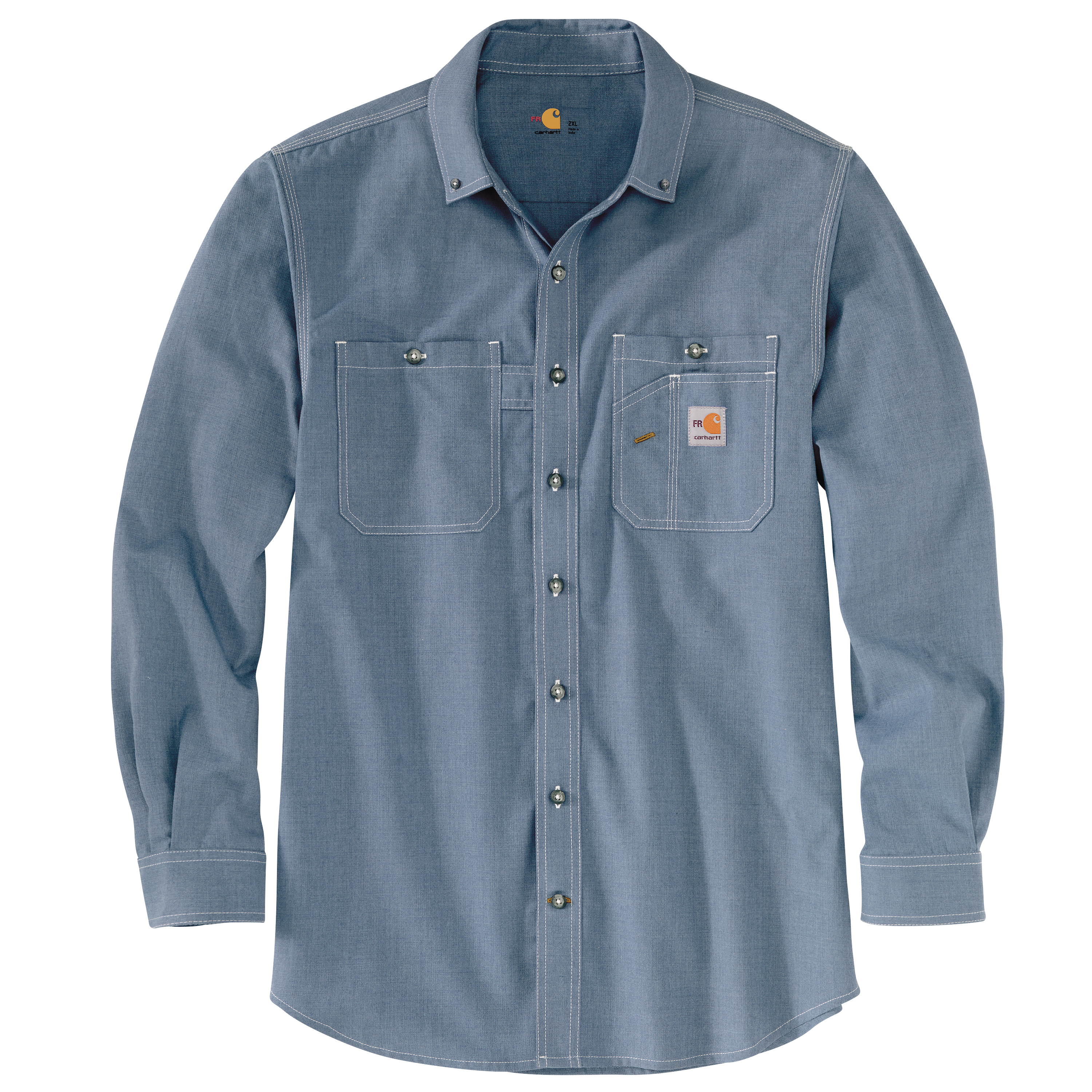 4.7-ounce, 50% viscose/33% meta-aramid/10% nylon/5% para-aramid/2% antistat FR twill Inherently Flame-Resistant fabric Meets the performance requirements of NFPA 70E/ASTM F1506 UL® Classified to NFPA 2112 FastDry technology keeps you cool for all day comfort Force Sun Defender™ UPF 50+ protection blocks 98% of harmful UV radiation Anti-microbial technology prevents odor Triple-stitched main seams Breathable honeycomb weave Wrinkle resistant, anti-static, colorfast fabric Extended sleeve plackets with two-button adjustable cuffs Carhartt FR label sewn on left pocket; NFPA 2112/CAT 2 label sewn on sleeve placket Two chest pockets with button closures; Tradesman double-layer pocket on left chest Center back length (medium, regular length): 31” Imported