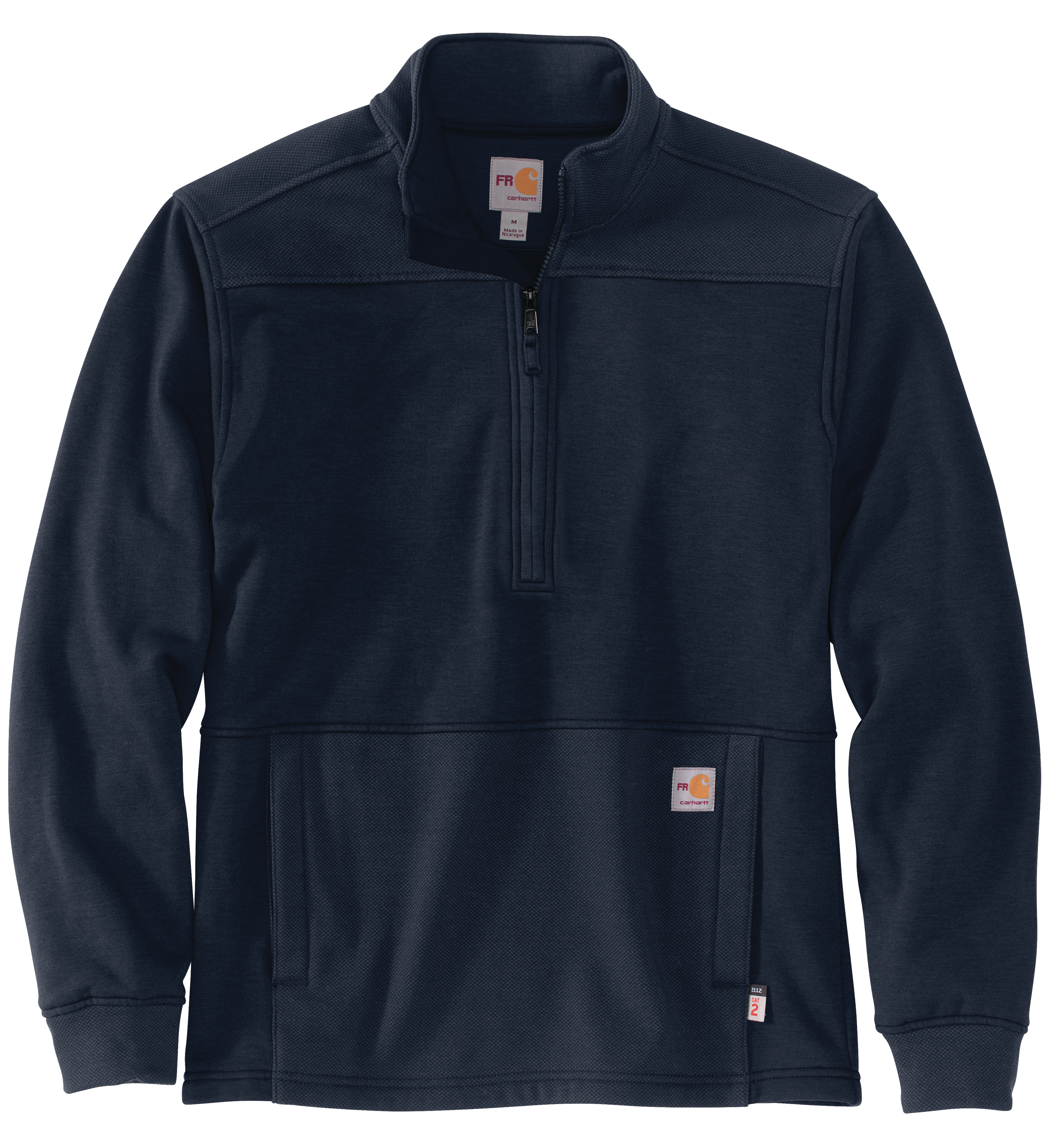 This men's Carhartt mock neck pullover keeps you working through light rain and wind while meeting the performance standards of NFPA 70E. Made of flame-resistant fleece with a bit of stretch for easy movement. Reinforced with an abrasion-resistant print a