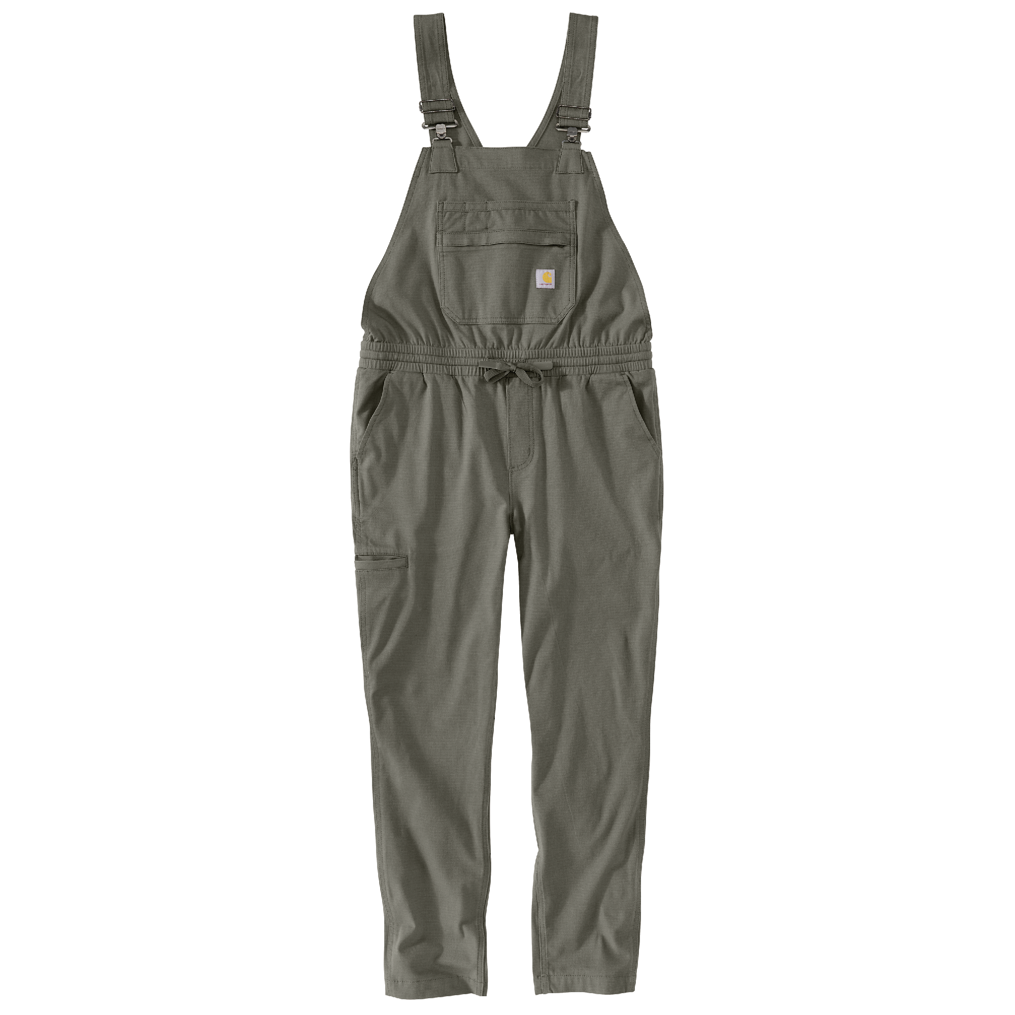 As rugged as they come, this women's Carhartt bib overall lets you move without restriction. The ripstop cotton blend stretches, fights sweat, and dries fast to keep you cool and comfortable all day long. They're cut for a relaxed fit for a little extra r