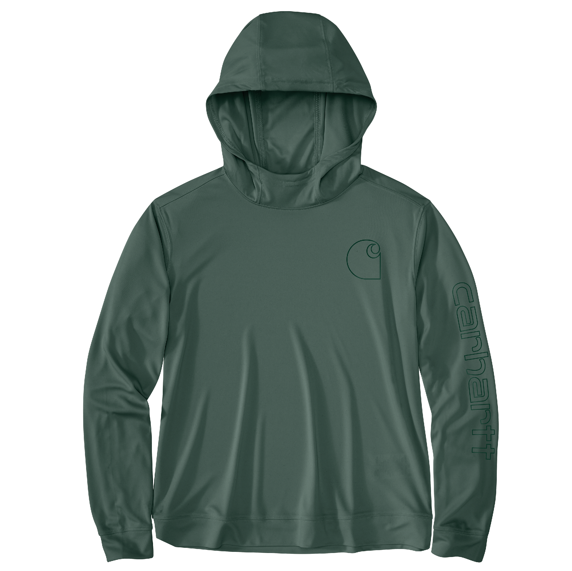 Pull on this women's Carhartt long-sleeve t-shirt for lightweight coverage to get you through hot, sunny days. A lightweight hood extends coverage, while UPF-rated jersey blocks sun, fights sweat, and dries quickly to keep you cool, dry, and focused whil