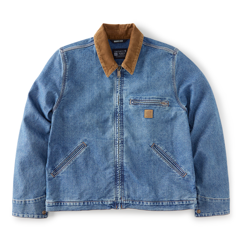 A workday staple with legendary Carhartt durability. This men's jacket is made in cotton-blend denim that's triple-stitched to stay tough. It has a relaxed fit and built-in flex so you can move freely.12.5oz, 70% cotton / 29% polyester / 1% elastane denim
