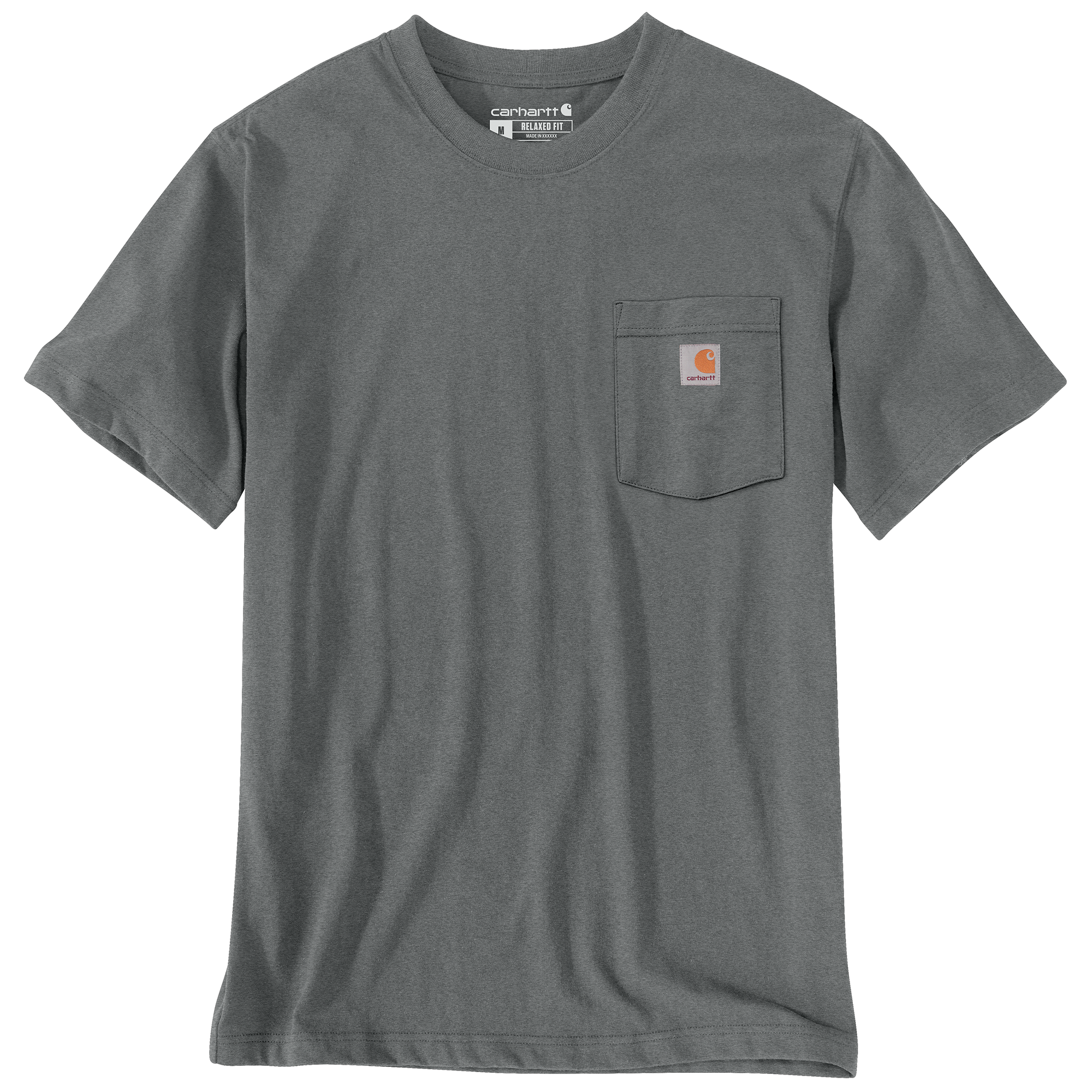 This men's Carhartt t-shirt features truck graphics on the front and back. A tough tee with a reinforced pocket, it's built from cotton-blend fabric with a rib-knit collar and cuffs that hold their shape. Made for a relaxed fit that's closer to the body.