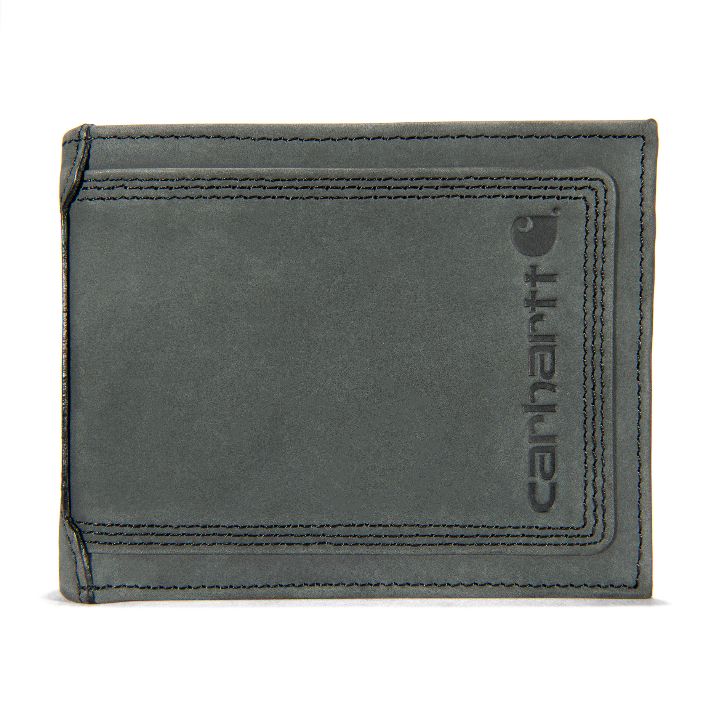 Hand stitching and an embossed Carhartt logo give this men's passcase a rugged look. It's made of top-grain leather, with a sweat-resistant patch that helps keep the wallet dry. The billfold is lined with cotton duck.
