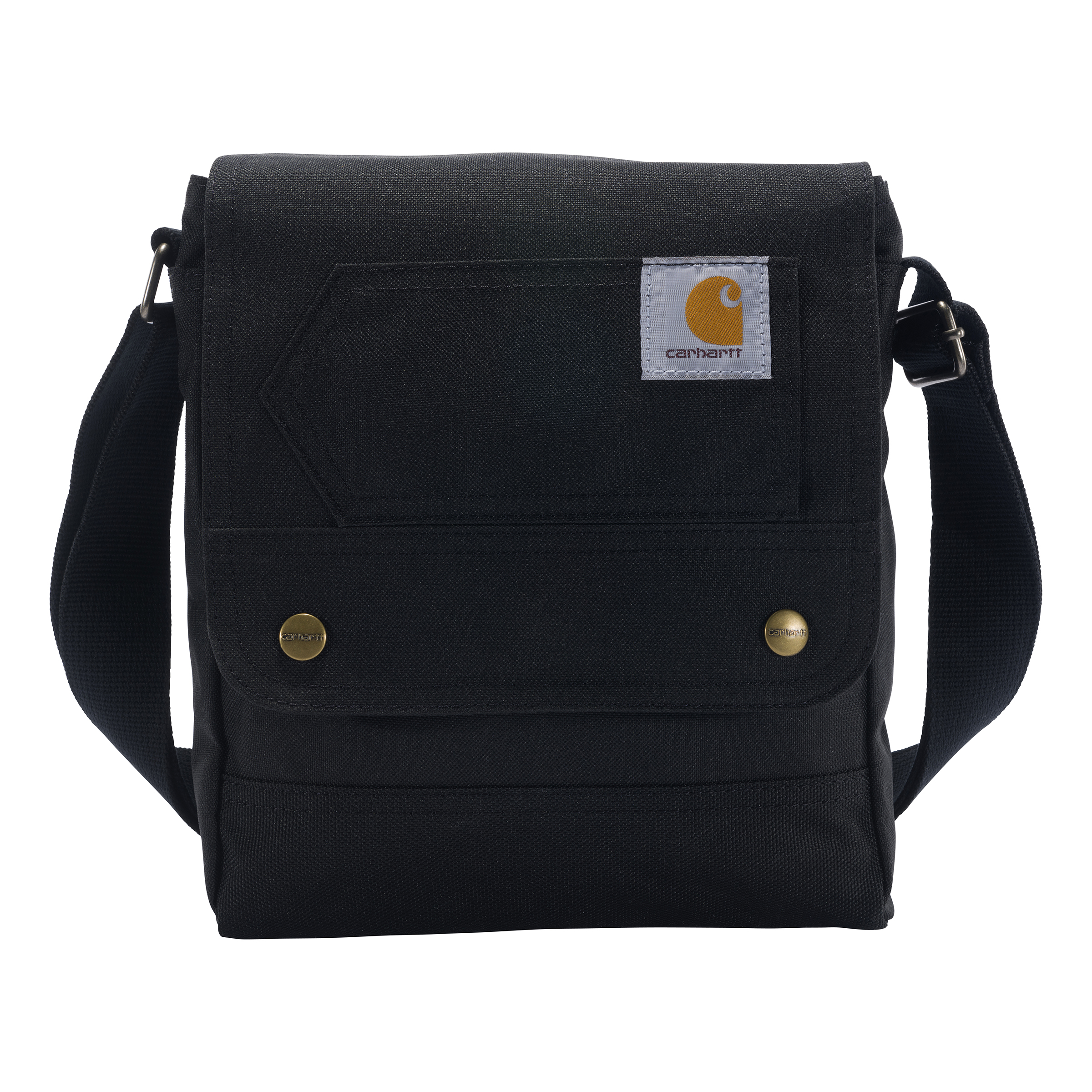 600 denier polyester with Rain Defender® durable water repellent Dimensions: 9 X 11 X 2.5 Large main compartment with flap over snap closure Four interior pockets Adjustable cross body shoulder strap Model No. CP0377 Country of Origin: Imported
