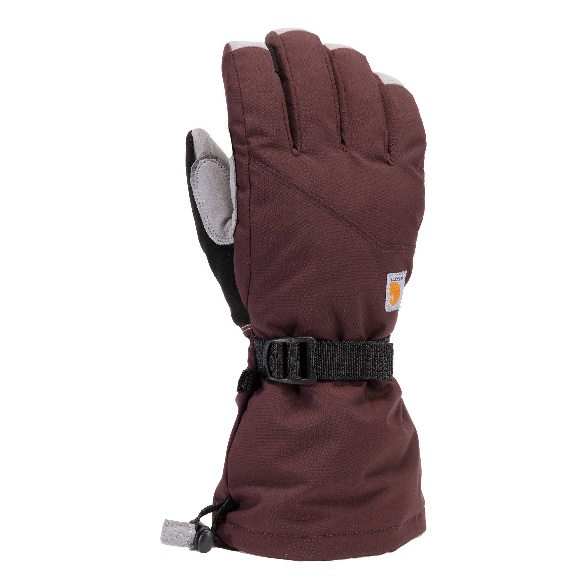 Warm hands are tool number one. These women's Carhartt work gloves are made to seal out cold, stormy conditions. From the extended gauntlet cuff to the waterproof, breathable tech, they keep your hands warm and on the job. Soft fleece welcomes your hands on the inside, while the lining fights sweat and dries fast for comfort that lasts as long as your work day. Touchscreen-friendly fingertips let you check in without removing your gloves.Durable 10k waterproof-breathable polyester shell