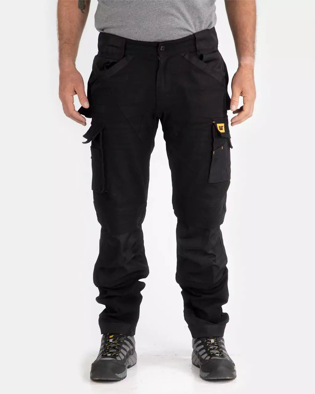 These pants are made to get the job done, so specialty pockets abound: a knife pocket; cell phone pocket; secure side cargo pocket; pull-out tool pockets; reinforced front reach in pockets; cutaway rear pockets.