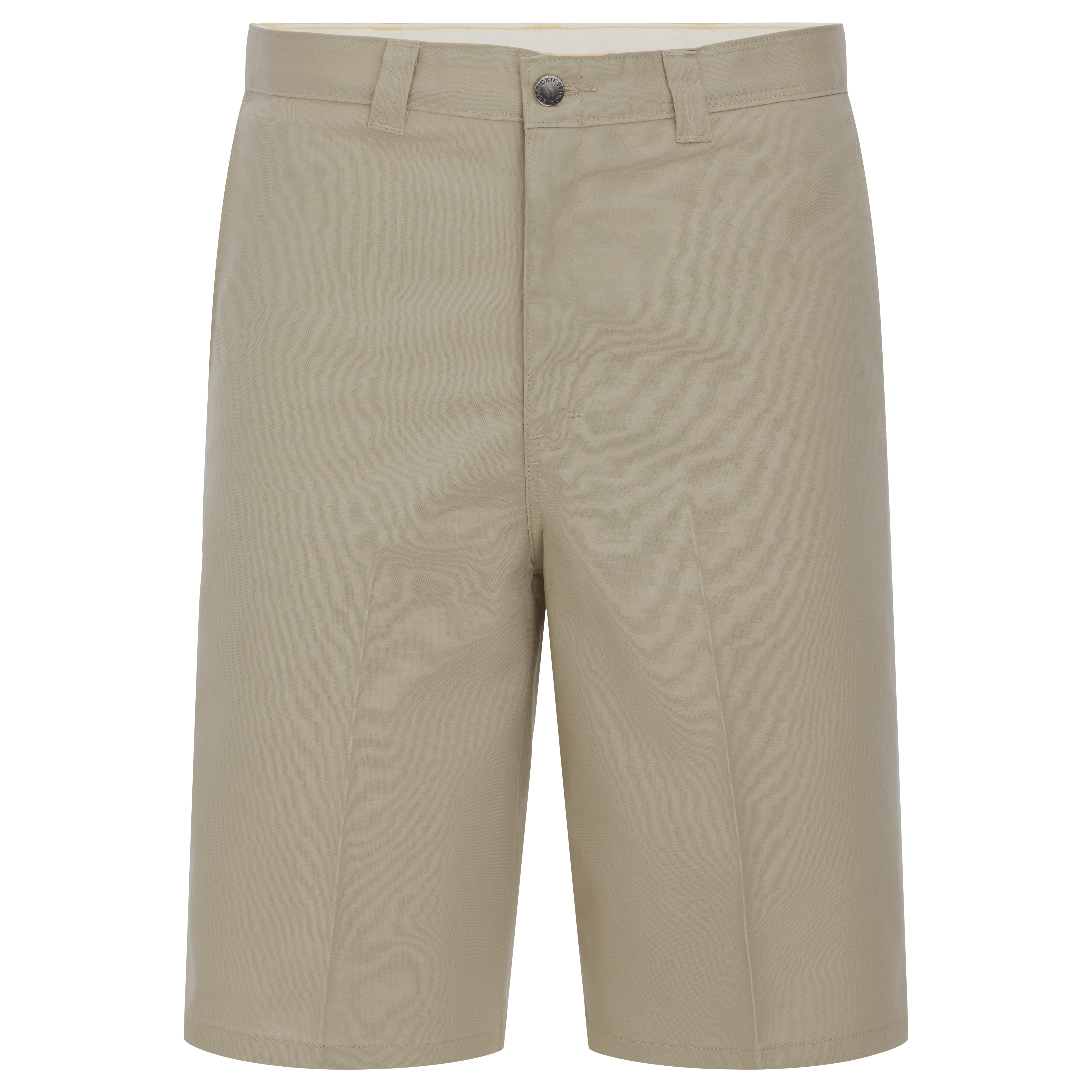 Dickies' 11 Industrial Relaxed Fit Multi-Use Pocket Short is engineered to last, as it sits at the waist and has extra room through the seat and thigh. The 11 inseam brings the hem in right above the knee, providing ease of movement. The polyester/cotton twill fabric is woven for durability and longevity, and it incorporates both E-Z Touch and StayDark® Technology for superior color fastness and a softer fabric. It is equipped with a metal button closure, wider, stronger belt loops, reinforced pockets with triple needle stitching at the pocket bottom, and reinforced crotch and seat seams. The extra, multi-use pocket on the leg of this short provides for extra storage.