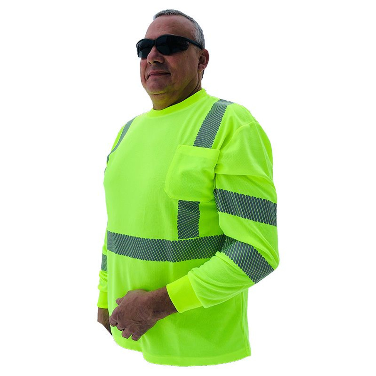 The Forester Hi Vis Safety Green Class 3 safety Long Sleeve shirt is made in accordance to Ansi/Isea 107-2020 Class 3 Standards. The 100% polyester design makes this shirt more comfortable and helps wick away moisture. It features a Scotchgard® Stain R