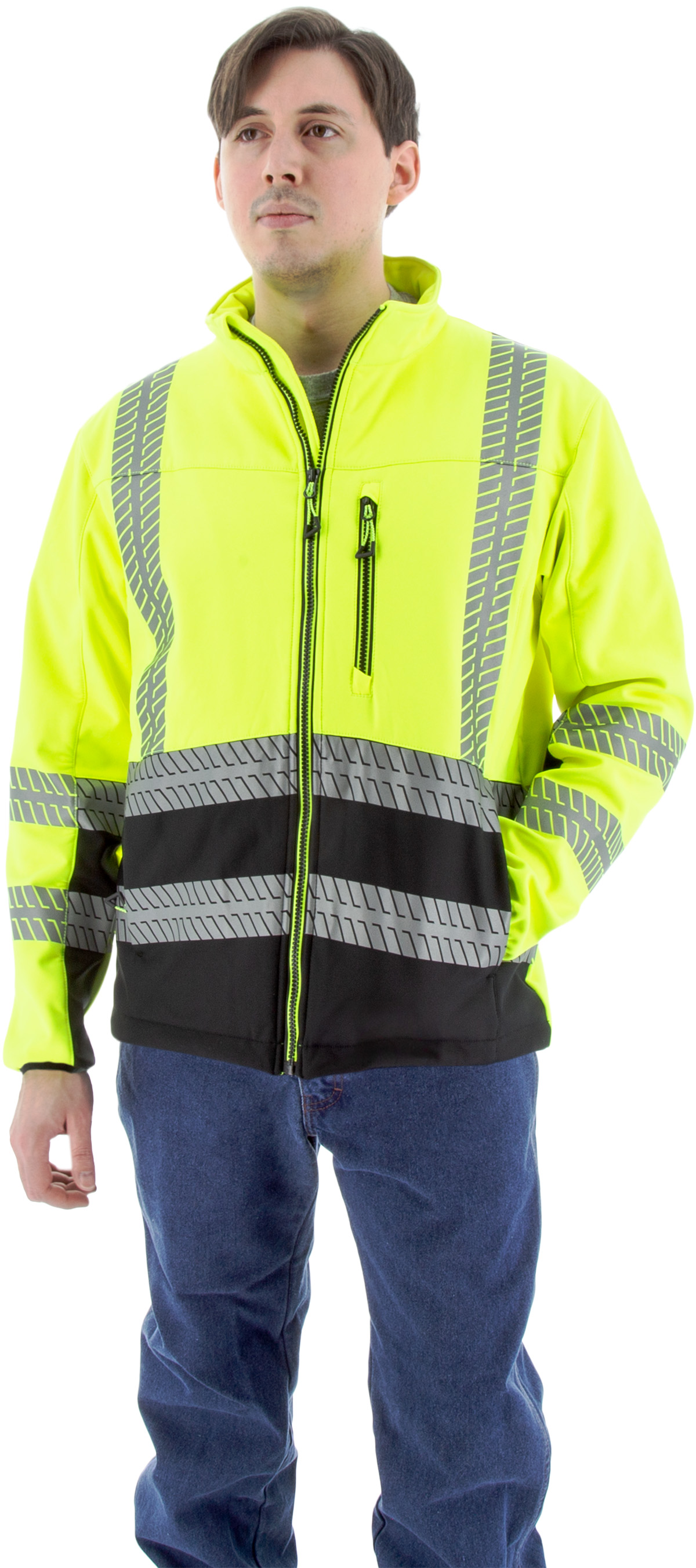 High Visibility Water Resistant Softshell Jacket and Liner, Yellow w/Black Bottom ANSI 3, R .