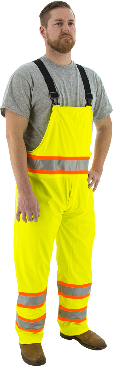 High Visibility Waterproof Rain Bib Overalls with DOT Striping, ANSI E