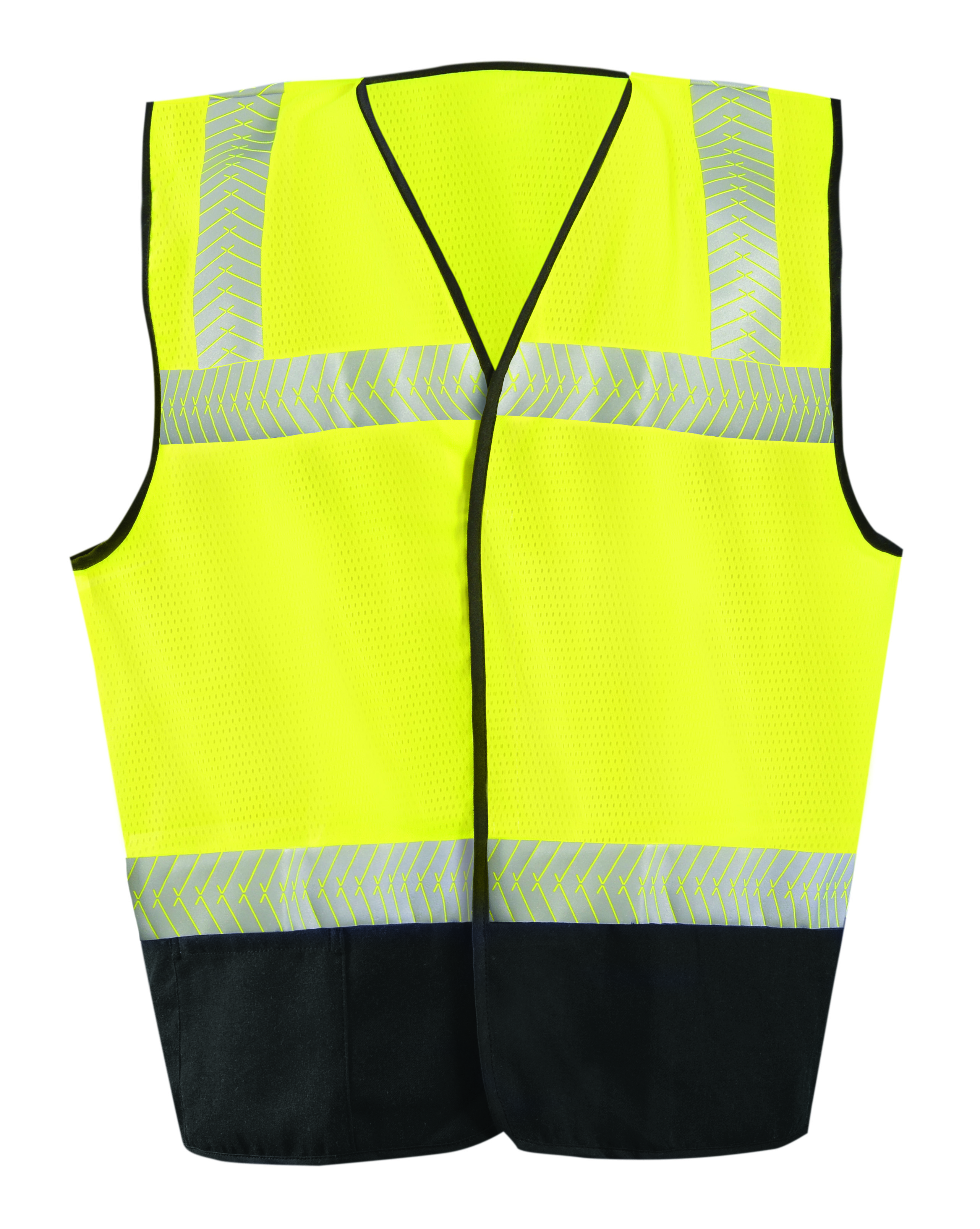 Occunomix FR-VM2142 FLAME RESISTANT BLACK BOTTOM OCX PATENTED SEGMENTED SINGLE STRIPE MESH VEST *