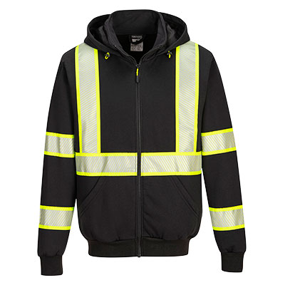 This product does not comply with ANSI/ISEA 107-2015,2 silver HiVisTex Pro reflective tape with contrast material,Polycotton fabric for extra comfort,Pockets: 2 front pockets,Adjustable hood for varied weather conditions,Elasticated rib waistband and cuffs,Generous fit,Elasticated rib waistband and cuffs