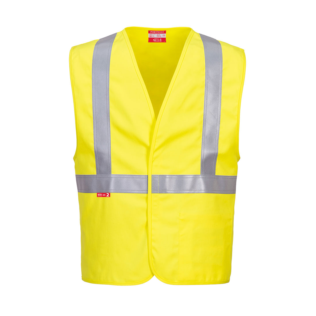 This Bizflame® 88/12 Hi-Vis FR Woven Vest features 2 wide silver reflective strips, one around the body and one over each shoulder in a 'H' configuration. Lightweight and comfortable, this NFPA certified vest is perfect for working in warm temperatures worn over other ARC rated clothing.