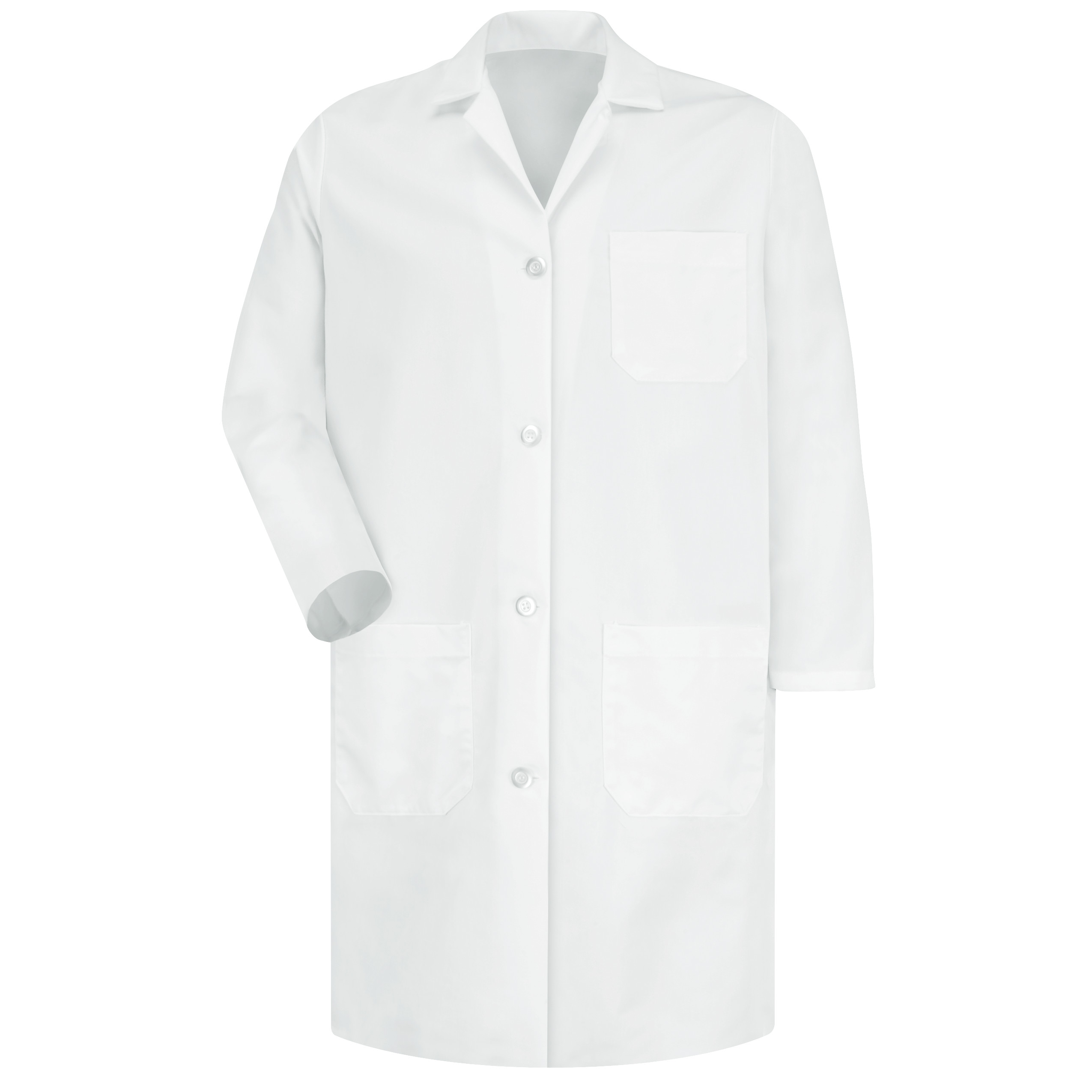 Non-yellowing buttons for long-lasting whiteness and professional appearance Requires minimum ironing thanks to a wrinkle-resistant finish One chest pocket and two lower pockets provide storage for tools and personal items Side vent openings for easy access to underneath attire Pleated back with sewn-on belt for a fitted, professional appearance (38 ¼ in. back length on size medium) Industrial laundry friendly