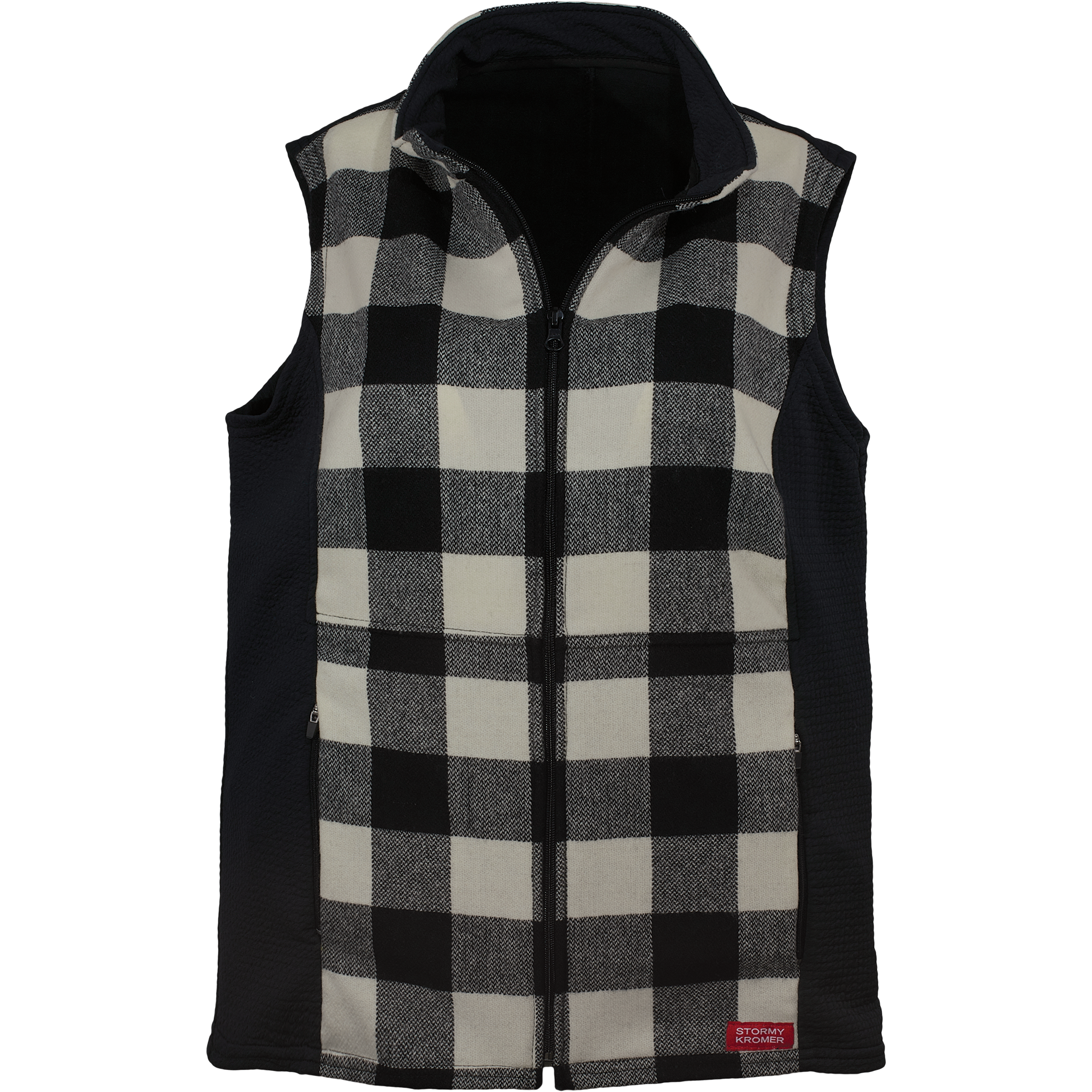 Made with American Woolen plaid wool in bold buffalo check, this sassy, sporty little number offers the ultimate in flexibility - as a warm layer or as statement outerwear. Zippered pockets keep your keys and other essentials close at hand as you venture out and about.