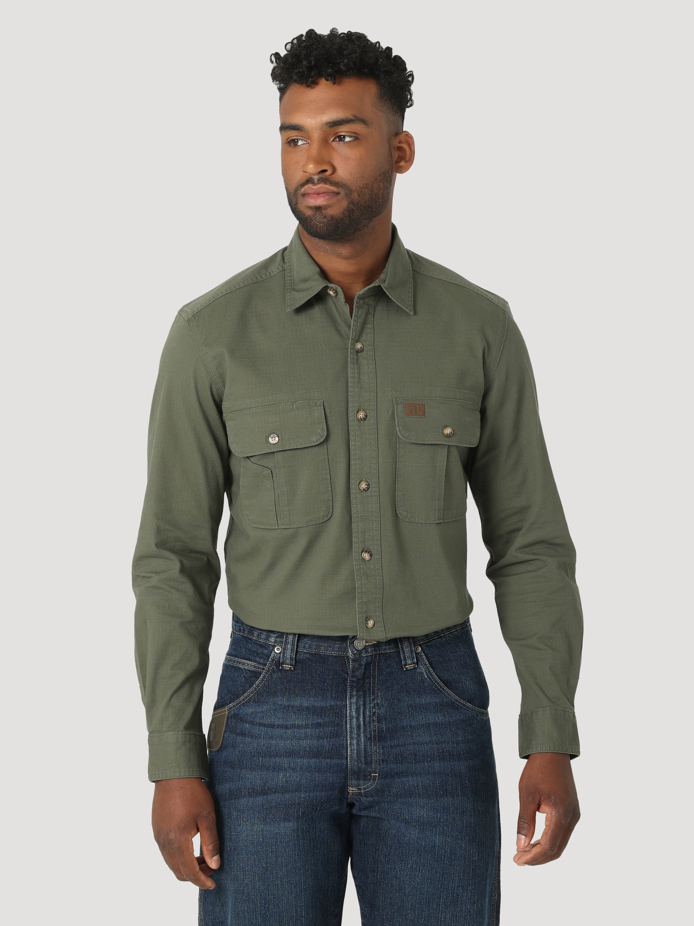 When there's hard work to be done, the Wrangler® RIGGS WORKWEAR® long-sleeve ripstop work shirt has your back. It's crafted from a lightweight cotton blend with just the right amount of stretch to keep you moving in total comfort well past quitting time. Its ripstop construction ensures breathability and tear-resistance. It comes fully equipped with two button flap chest pockets with an extra tool pocket on the right for added hands-free convenience. It features a straight back yoke and the classic tailoring of a button-up shirt you'd wear when you're off the clock. This collared work shirt combines side gussets with a generous fit for greater extension and flexibility. Complete the uniform with your favorite pair of Wrangler work jeans.