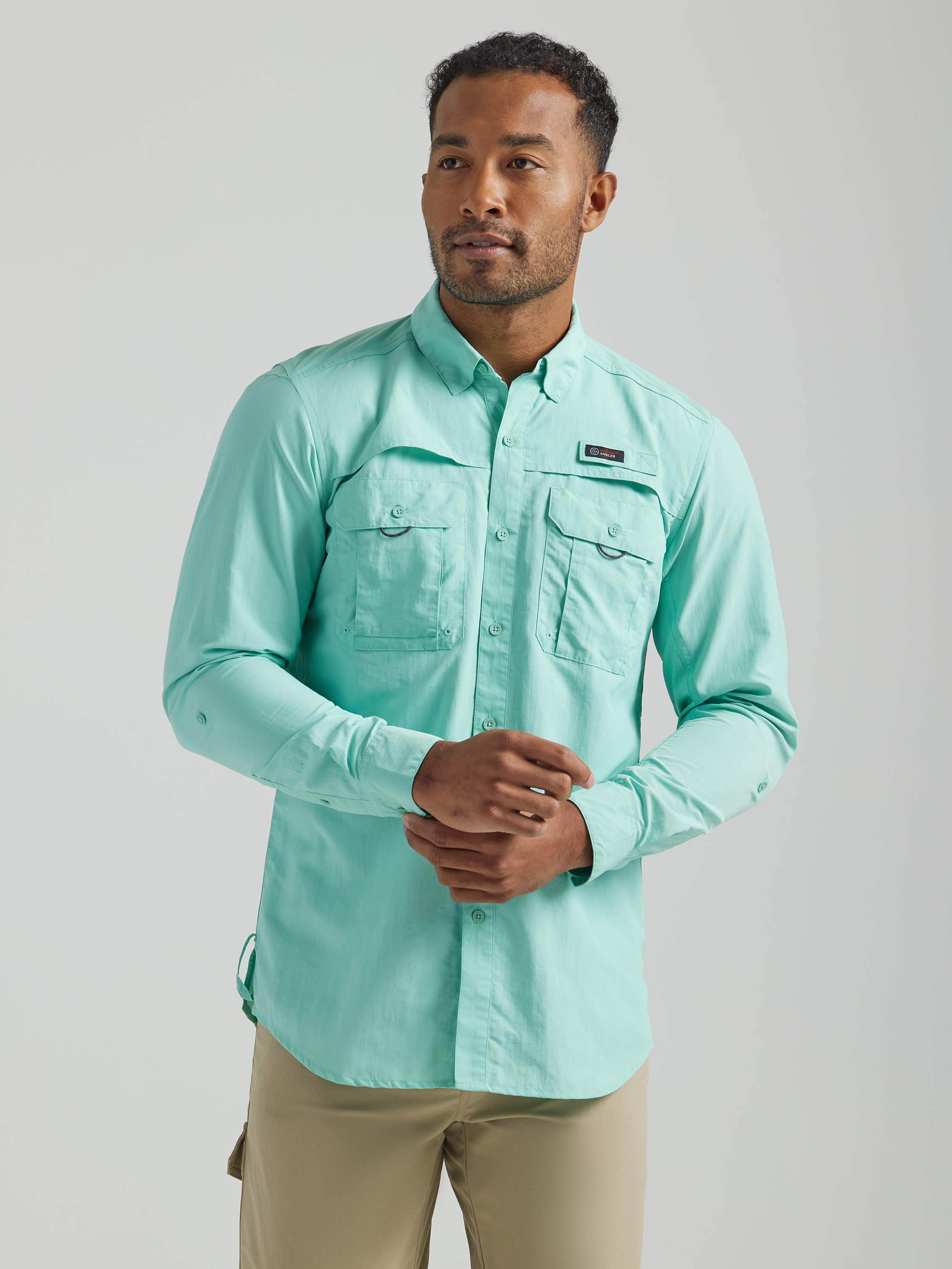 Patent Pending Convertible Sleeve System, Buttoned Flap Patch Pockets, Hidden Dry Patch at Right Chest Pocket, Utility Loop at Pocket, Rod Tab On Wearer’s Left Chest, Rod Loop on Wearer’s Right Side at Hem, Deluxe Vent on Back Yoke.
