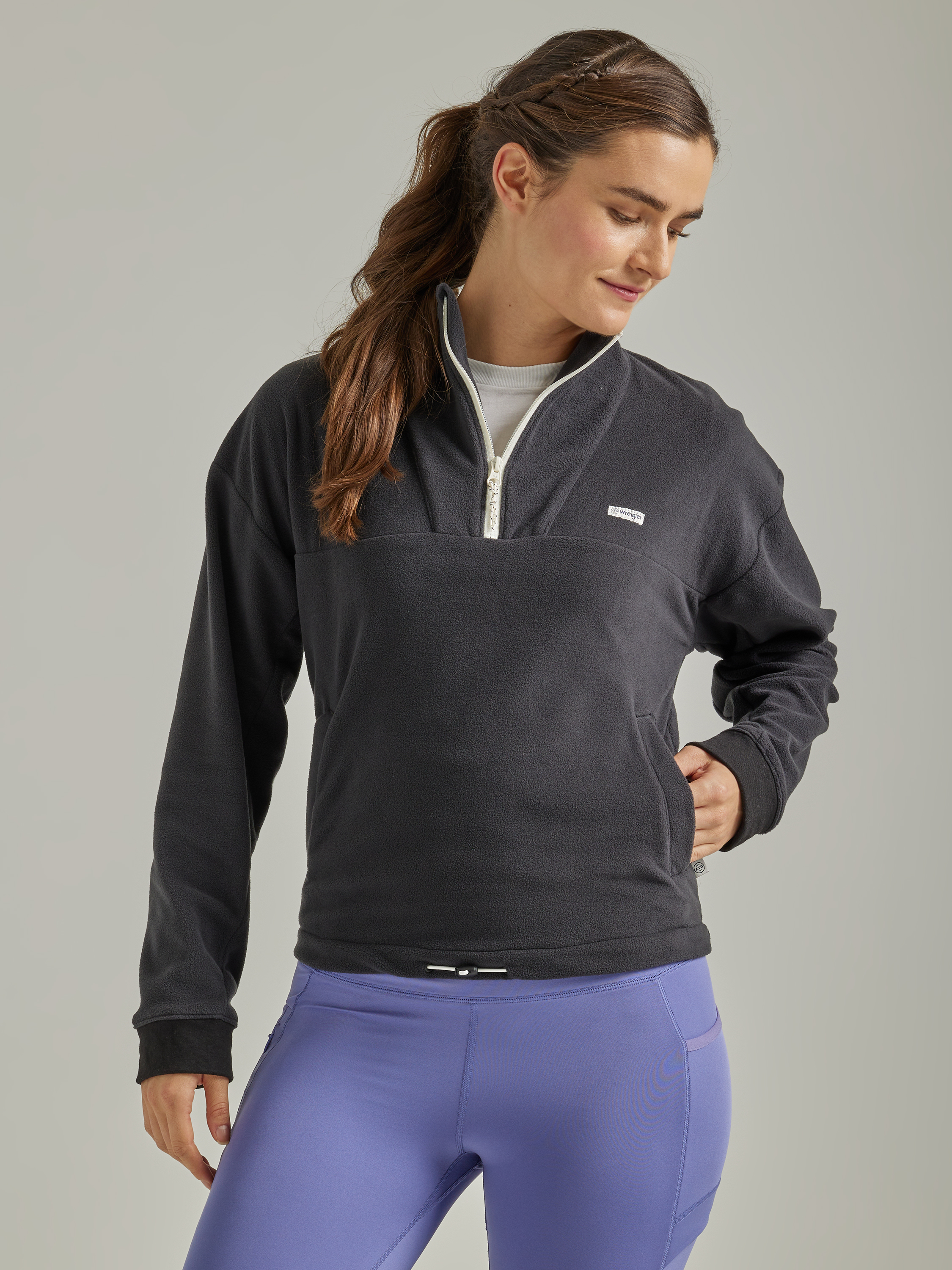 Relaxed Fit, ¼ Zip Front, Slip in Hand Pockets, Adjustable Drawcord Waist, Rib Knit Cuffs, UPF, Wicking, 2-Way Stretch.