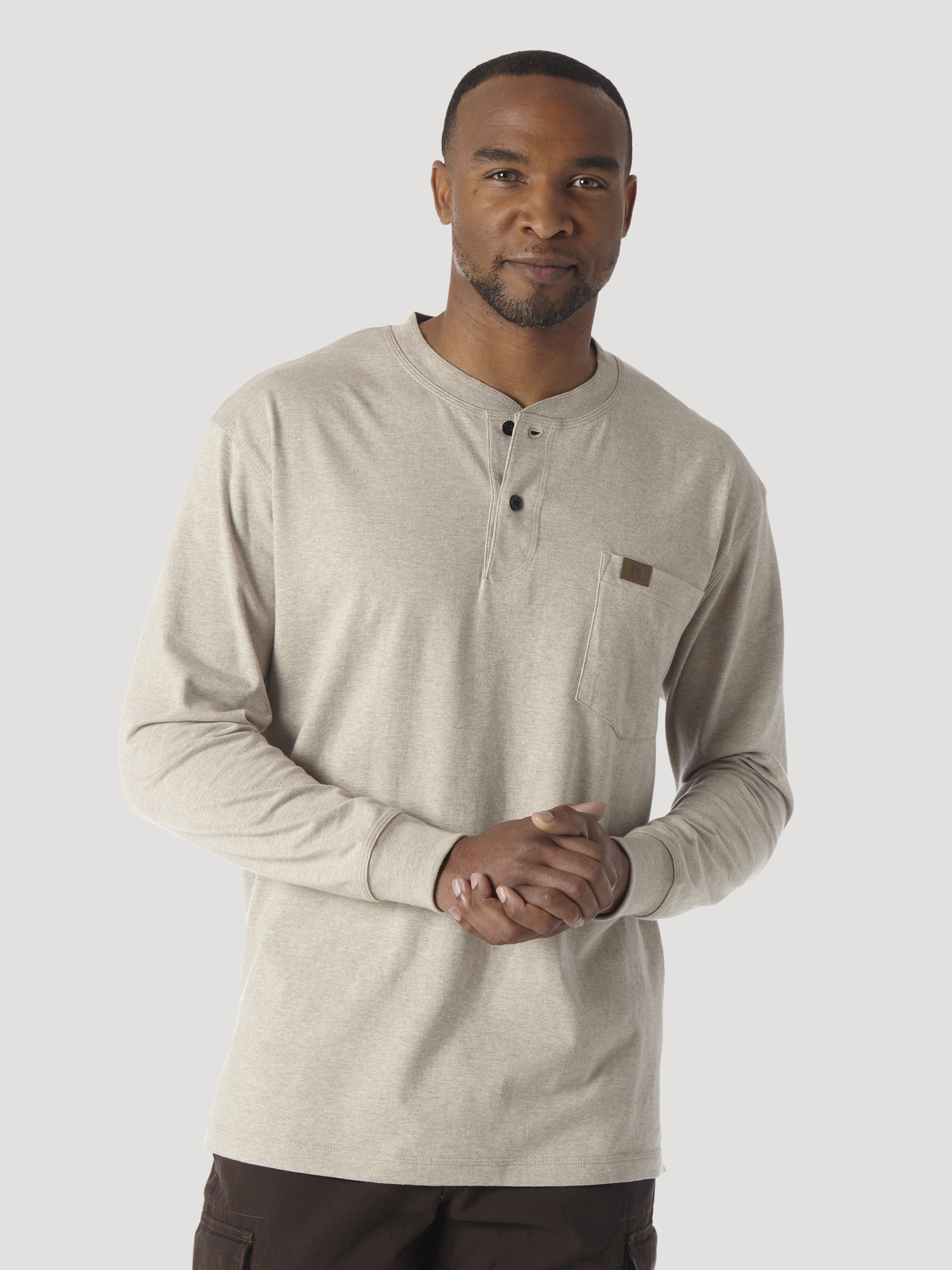 Long Sleeve Henley, Comfortable Relaxed Fit, Two Button Placket, Vented Taped Sideseams, Left Chest Pocket with Hidden Utility Loop, Tagless Label.